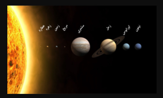 تصویر2 – بزرگی ستاره خورشید(از خودش نور صاتع می کند) در مقابل هشت سیاره منظومه شمسی(از خودش نور ندارند) از عطارود تا نپتون.