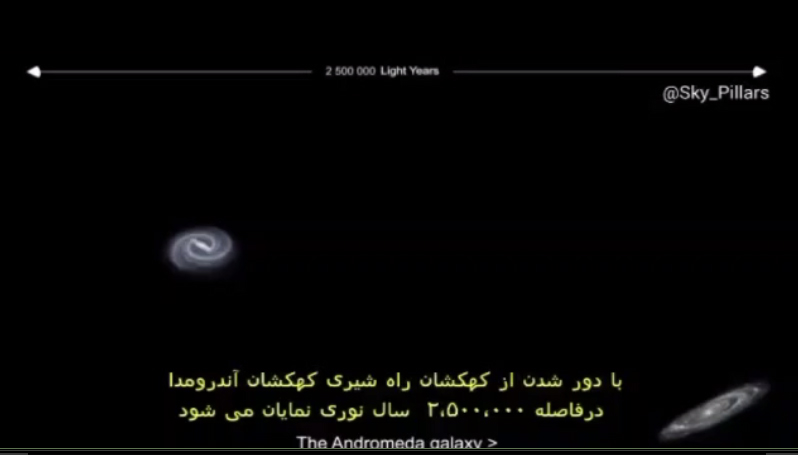 یعنی فاصله این دو کهکشان حدود 25 برابر قطر کهکشان راه شیری است. در تصویر شماره 4 مقیاس این فاصله دیده می شود.