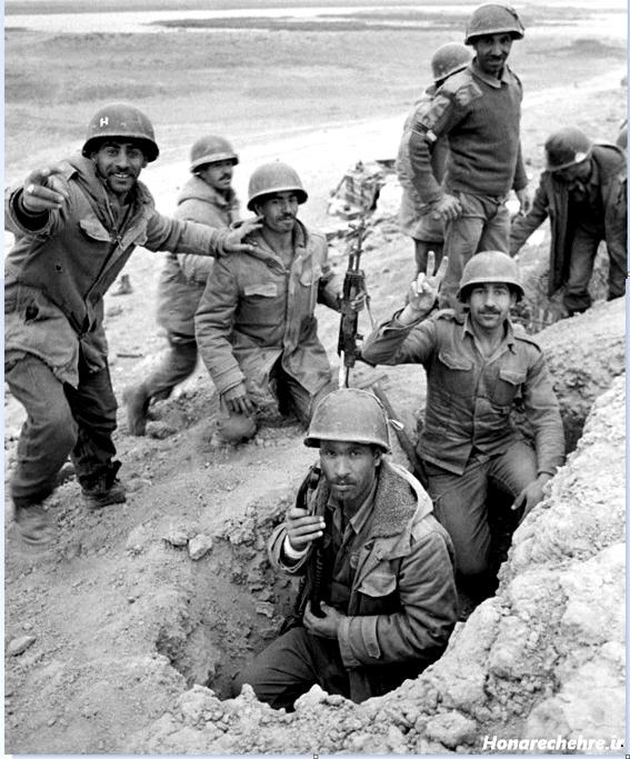 رزمندگان در جبهه جنگ ایران و عراق. نمونه ای از چاله در زمین برای محافظت از ترکش ها